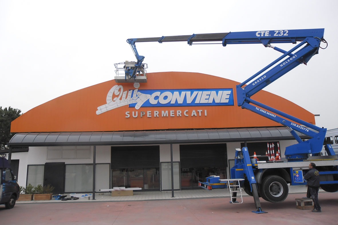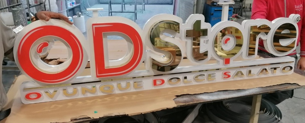 Le insegne scatolate sono soluzioni tridimensionali che garantiscono un forte impatto visivo. Realizzate in materiali come metallo, plexiglass o PVC, possono essere luminose o non luminose. Ideali per negozi, aziende ed edifici commerciali, offrono un design elegante e una grande visibilità, sia di giorno che di notte.